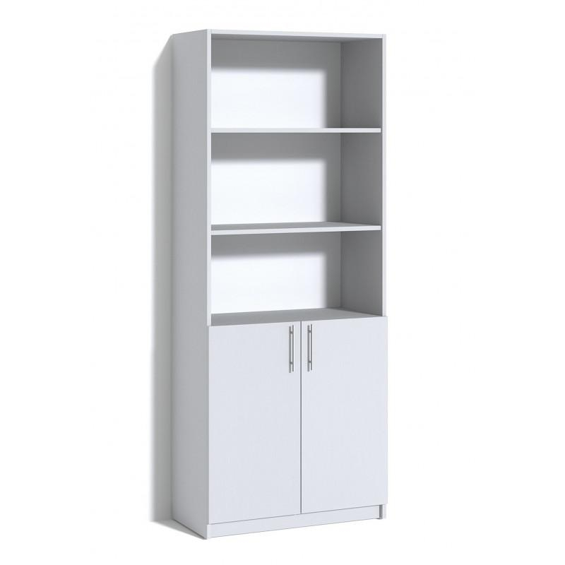 Dulap medical cu 3 nise deschise și 2 rafturi închise, realizat din PAL melaminat cu grosimea de 18 mm. Fațada dulapului este finisată cu cant ABS de 1 mm, iar piesele interioare cu cant ABS de 0,5 mm. Peretele din spate este din PFL melaminat alb, grosime 3 mm. Dulapul dispune de minere cromate, posibilitatea ajustării distanței dintre polițe și este asamblat cu elemente de fixare sigure. Este dotat cu picioare reglabile din plastic. Culoarea disponibilă este frasin alb. Garanție de 24 luni.