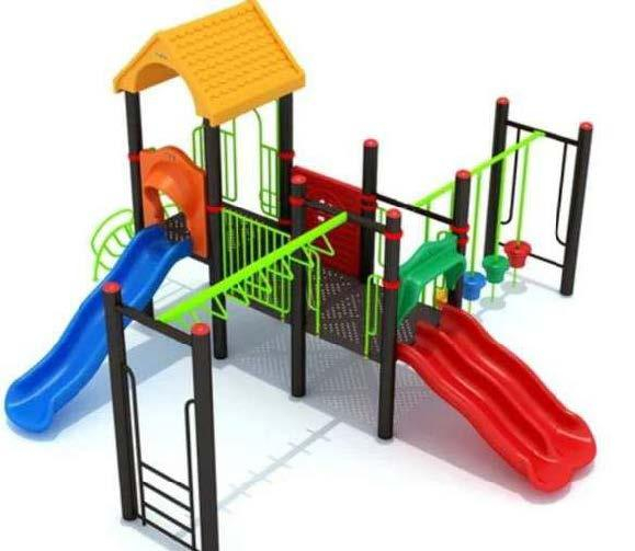 Structură robustă și sigură, conform standardelor pentru copii Tobogane, leagăne, zone de cățărat și panouri inter1e Design atr1 și colorat, prietenos copiilor Materiale durabile, rezistente la intemperii și uzură Ideal pentru grădinițe, școli, parcuri și curți de joacă L x l x H : 7,25 m x 6,75 m x 2,75 m