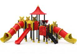 Acest complex de joacă multifuncțional are un design inspirat din natură, fiind decorat cu acoperișuri sub formă de frunze verzi și elemente ce amintesc de vegetația forestieră. Structura oferă un spațiu sigur și atr1 pentru 1ități în aer liber, îmbinând estetica naturală cu durabilitatea pilonilor de susținere maro.