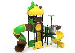 Acest complex de joacă multifuncțional este conceput pentru a oferi copiilor o experiență de aventură sigură și captivantă în aer liber. Structura impresionantă include un tobogan spiralat închis, scări de acces și diverse platforme protejate, fiind decorată cu elemente tematice vesele precum o omidă și un acoperiș în formă de ciupercă. Designul robust și culorile vii de verde și galben transformă orice spațiu de joacă într-un punct de atracție inter1 care stimulează 1itatea fizică a celor mici.
