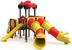 Echipamentele recreative de exterior sunt ansambluri multifuncționale ce includ nave de pirați tematice și turnuri cu acoperișuri colorate, dotate cu tobogane spiralate sau de tip tunel. Aceste complexe integrează scări de escaladare, poduri de legătură și elemente decorative precum roți sau figurine, oferind totodată variante extinse cu leagăne suspendate. Pentru siguranță și accesibilitate, unele modele sunt prevăzute cu rampe lungi protejate de garduri, platforme de observație la înălțime și elemente vizuale atr1e, precum mașini stilizate.