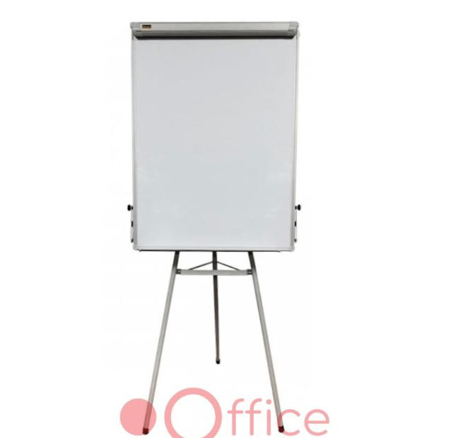 Flipchart magnetic cu suprafață albă, folosit pentru scriere cu markere whiteboard cu ștergere uscată și atașarea informațiilor cu magneți. Dispune de clemă pentru agățarea foilor de hârtie, trei picioare și sistem de stabilizare pentru o utilizare comodă. Include suport pentru blocurile de hârtie și raft pentru markere. Dimensiuni: 70x100 cm.
