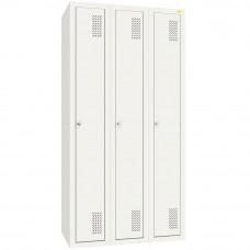 Dulap pentru haine cu 3 secții:Disponibil în două dimensiuni: (LxGxH) 900x500x1800 mm Vestiar este fabricat din oțel rezistent, cu o grosime de 0,6 mm.Este acoperit cu vopsea pulbere de culoare gri deschis (RAL 7035)