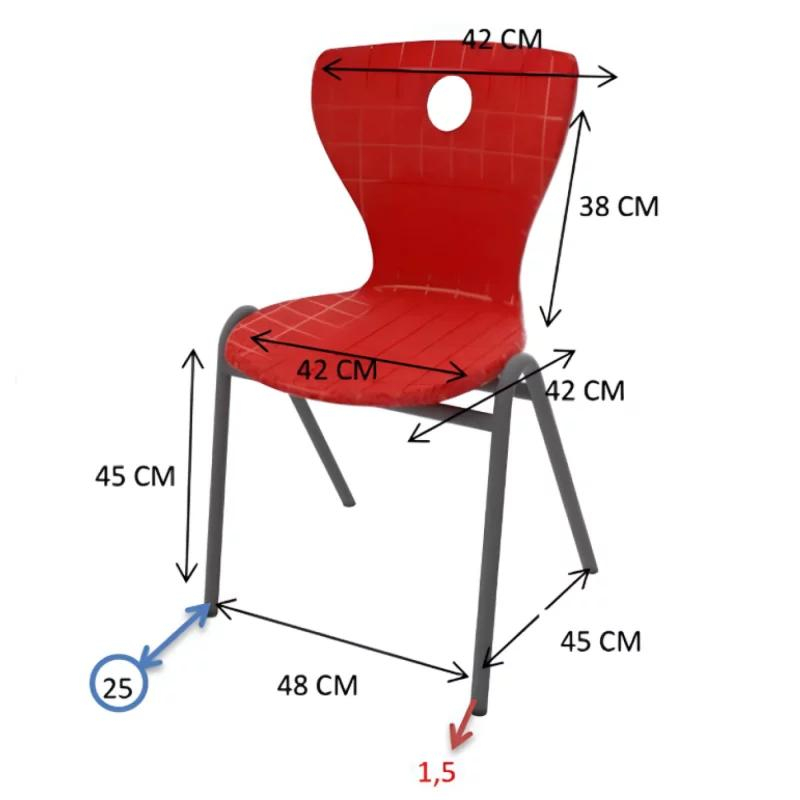 Scaun cu șezut și spătar din plastic Șezutul și spătarul scaunului sunt un bloc unic (monobloc), din plastic turnat solid, fabricat din polipropilenă de calitate, care are o textură ușoară, astfel nu alunecă și este rezistent la zgârieturi fine.