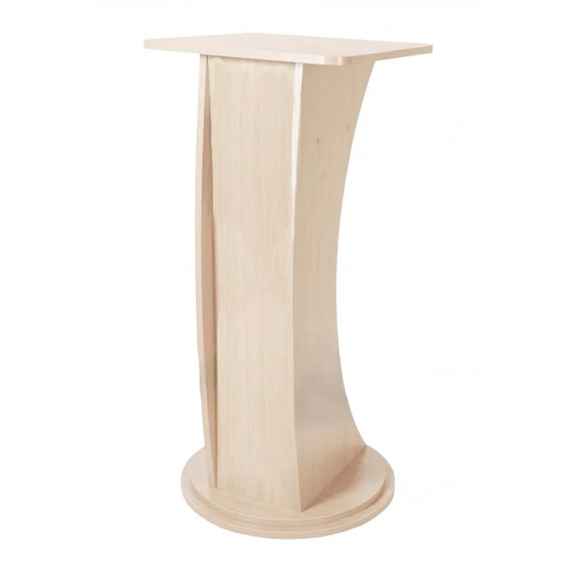 Tribuna pe suport rotund, realizată din PAL melaminat cu grosimea de 18 mm. Dimensiuni: 550x560x1300 mm. Are fațada încleiată cu cant din ABS de 1 mm, culoare fag. Blatul este neted cu colțuri rotunjite, cu o nișă deschisă în partea din spate. Părțile laterale sunt semiovale, iar componentele sunt asamblate cu elemente de fixare speciale. Greutate: 28,5 kg. Culori disponibile: fag. Termen de garanție: 12 luni.