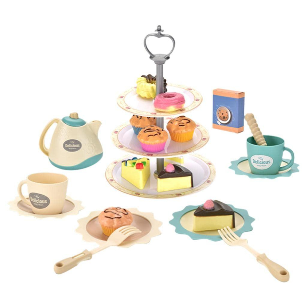 Set complet pentru desert cu un ceainic inclus, realizat din plastic durabil. Include 31 de piese, perfecte pentru jocuri de rol și joacă creativă. Ambalat într-o cutie cu dimensiunile 29,3 x 39,5 x 9,6 cm, ideal pentru depozitare și transport. Produs destinat copiilor pentru dezvoltarea imaginației și abilităților sociale prin joc.