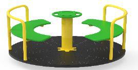Этот современный экологичный карусель предназначен для обеспечения динамичного и устойчивого игрового опыта. Оборудование оснащено эргономичными скамейками зеленого цвета, установленными на черной круглой платформе с противоскользящей поверхностью. Центральная поддерживающая конструкция ярко-желтого цвета включает зеленые верхние ручки, обеспечивая пользователям стабильность и безопасность во время вращения, являясь идеальным элементом для парков, которые делают акцент на долговечные материалы и функциональный дизайн.