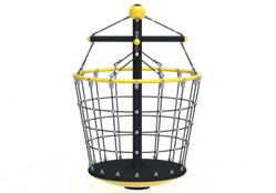 Это развлекательное оборудование для улицы — вращающаяся карусель типа «корзина», созданная для динамичного и увлекательного движения. Конструкция оснащена прочным вращающимся основанием и чёрным металлическим каркасом, оборудованным защитной сеткой из прочных канатов и верхним жёлтым поручнем для безопасности. Эргономичный дизайн позволяет пользователям стоять или сидеть внутри корзины во время вращения, стимулируя равновесие и координацию. Изготовленное из высококачественных материалов, устойчивых к погодным условиям, это оборудование является отличным дополнением для любой современной игровой площадки или городской зоны отдыха.