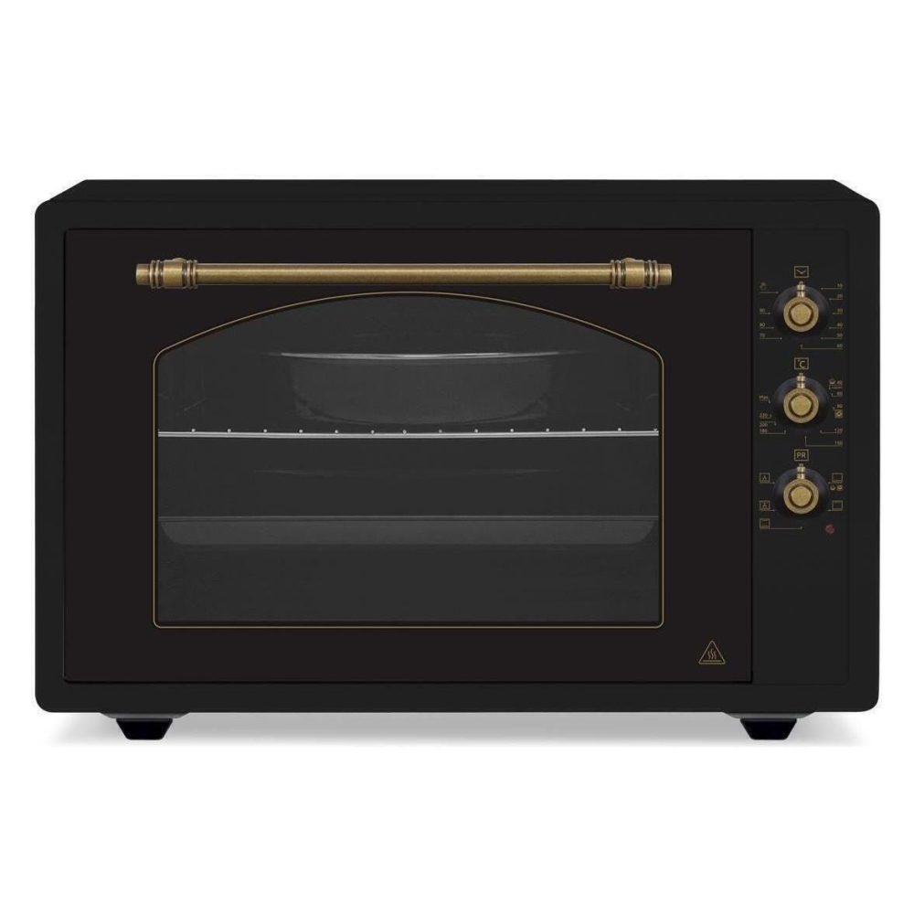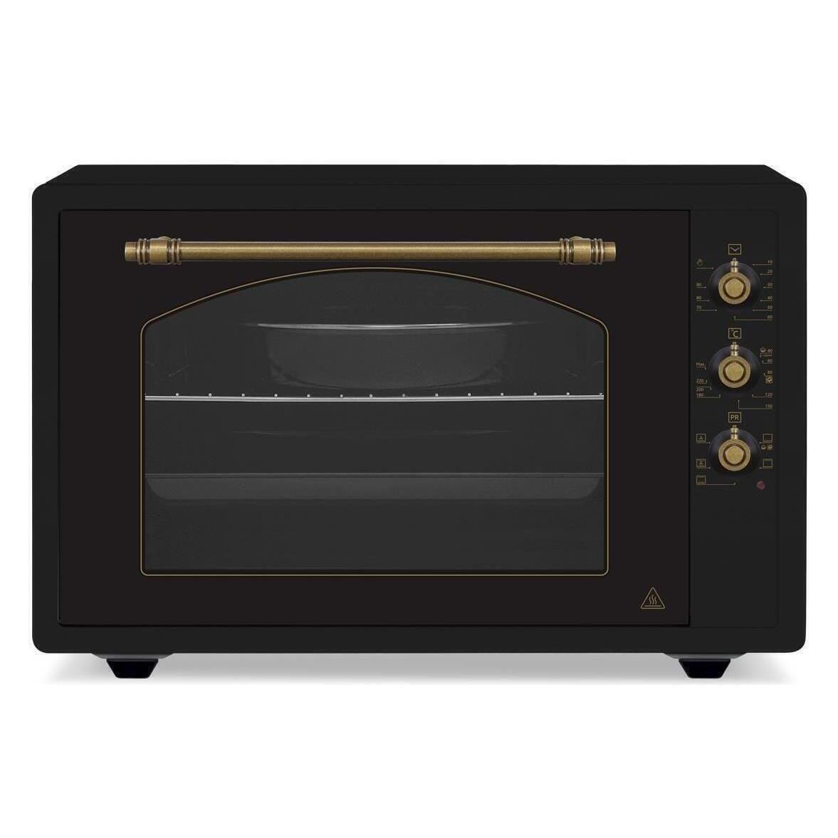 Мини электрическая печь Magnum M7051.R02N1.RAA имеет объем 70 литров и оснащена следующими характеристиками: механическое управление с 3 программами, термостат с регулировкой до 250°C, таймер, индикатор работы и внутреннее освещение. Печь имеет дверь с двумя стеклами, внутреннее покрытие из эмали, функцию конвекции мощностью 25 Вт и в комплекте два противня и решетку. Максимальная потребляемая мощность — 1800 Вт. Цвет изделия — черный, сборка в Турции, гарантия 24 месяца.