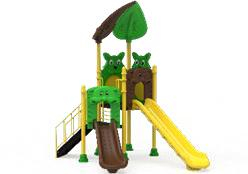 Представленный игровой комплекс — это многофункциональное уличное оборудование, разработанное для обеспечения разнообразного и безопасного игрового опыта, идеально подходящее для обустройства парков и детских садов. Его модульный дизайн гармонично сочетает элементы лазания с зонами быстрого спуска, все поддерживается прочной конструкцией с цветной отделкой в оттенках желтого, зеленого и коричневого.