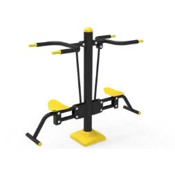 Этот уличный фитнес-аппарат предназначен для укрепления мышц верхней части тела, особенно спины, плеч и рук, с помощью тягательных движений. Оборудование имеет двойную конструкцию из черного металла, позволяющую одновременно использовать его двум людям на независимых рабочих местах, оснащенных желтыми сиденьями и эргономичными рукоятками. Работа основана на подъеме собственного веса тела, обеспечивая эффективную и безопасную силовую тренировку для пользователей всех уровней. Благодаря устойчивым к погодным условиям покрытиям и прочной конструкции, этот аппарат идеально подходит для оснащения общественных спортивных площадок и рекреационных парков.