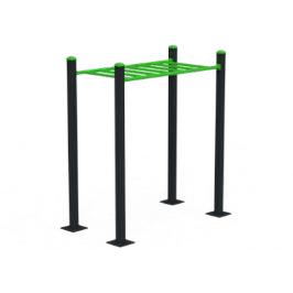 Этот уличный фитнес-комплекс разработан для продвинутых силовых и мобильностных тренировок, идеально подходит для подтягиваний, упражнений на «обезьяньих брусьях» и других движений калистеники. Прочная конструкция состоит из шести чёрных вертикальных столбов, соединённых тремя параллельными зелёными горизонтальными перекладинами, предоставляя множество рабочих мест одновременно. Благодаря прочной конструкции и минималистичному дизайну оборудование идеально подходит для городских спортивных парков, обеспечивая высокую долговечность при интенсивном использовании и воздействии окружающей среды.
