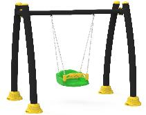Эта классическая качеля спроектирована для обеспечения безопасности и комфорта в современном и прочном дизайне. Основная конструкция черного цвета с желтыми акцентами у основания обеспечивает видимую и эстетичную стабильность. Эргономичное сиденье ярко-зеленого цвета подвешено на прочных металлических цепях, идеально подходит для любой наружной игровой площадки, ориентированной на долговечность и традиционный опыт качания.