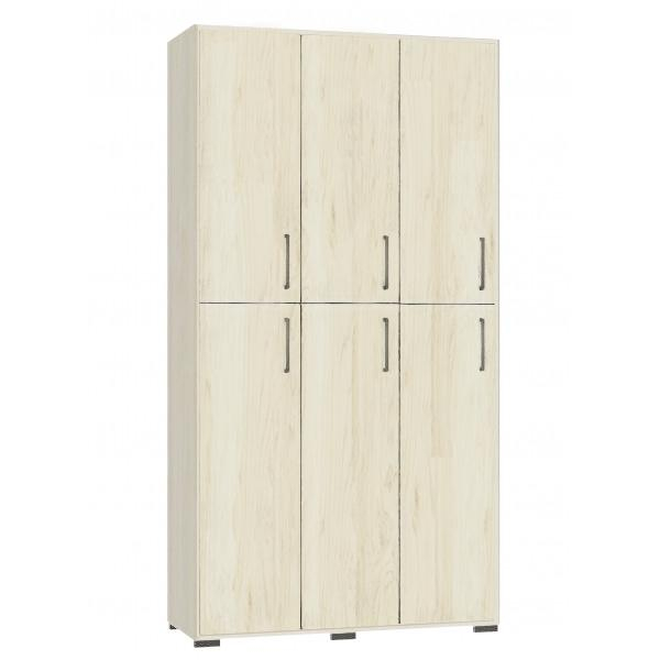 Шкаф с 6 дверцами для одежды Общие размеры (ДxШxВ): 1059x405x2025 мм. Шкаф изготовлен из ламинированного ДСП толщиной 18 мм. Фасад шкафа оклеен кромкой ABS толщиной 1 мм, внутренние детали - 0,5 мм.