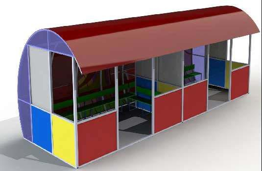 Двойной павильон — крупногабаритная уличная конструкция размером 1200 x 400 x 280 см, предназначенная для предоставления просторного места для отдыха и укрытия в игровых зонах, парках или учебных заведениях. Его дизайн выделяется значительной длиной 12 метров, представляя собой расширенный комплекс, способный одновременно вместить большие группы людей.