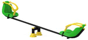 Качели для людей с ограниченными возможностями — это специально разработанное игровое оборудование, обеспечивающее максимальную доступность и безопасность. Его прочная конструкция состоит из черного металлического каркаса, поддерживаемого центральными стойками с желтыми основаниями, изготовлена из долговечных материалов, устойчивых к атмосферным воздействиям и износу. Эта модель оснащена двумя просторными зелеными сиденьями с желтыми защитными системами, окружающими пользователя для обеспечения устойчивости во время качания. Вся конструкция соответствует стандартам безопасности для детей, имеет привлекательный и красочный дизайн, идеально подходящий для инклюзивных парков.