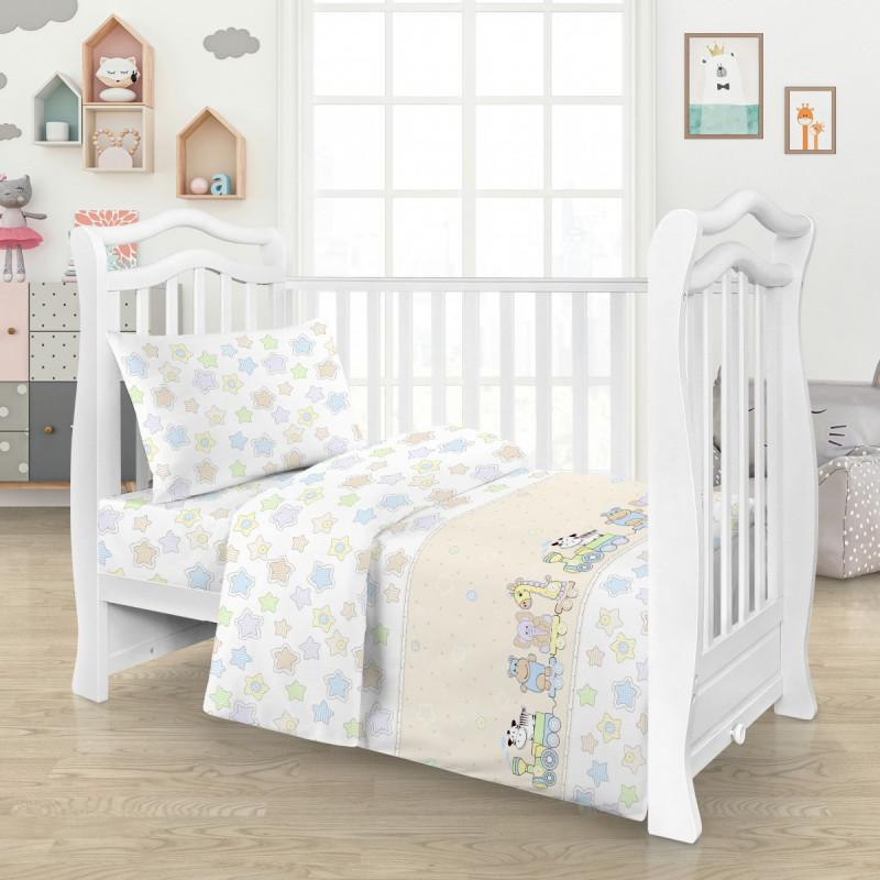 Set lenjerie de pat pentru copii Baby 2 realizat din țesătură 100% bumbac cu densitatea de 140 g/m2. Include cerceaf pentru pilotă de 110x148 cm, cerceaf de pat 110x150 cm și față de pernă 50x50 cm. Produs ideal pentru camerele copiilor, oferind confort și imprimare atr1ă.