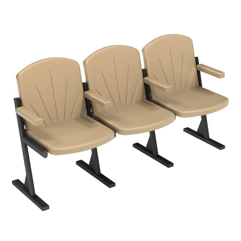 Fotolii semi-moi cu 3 locuri, tapitate cu eco piele. Dimensiuni: 1620x545x880 mm. Spatarul și șezutul sunt confecționate din placaj multistrat de 16 mm, cu margini rotunjite, umplute cu spumă poliuretanică de 30 mm (șezut) și 20 mm (spătar), tapitate cu eco piele. Cotiera este din cherestea de pin, umplută cu spumă poliuretanică de 10 mm și acoperită cu eco piele. Fotoliile sunt prevăzute cu 3 locuri, separate prin despartitoare metalice. Spatarul și șezutul scaunului sunt fixate de cadrul metalic cu șuruburi și piulițe ascunse. Carcasa este confecționată din profile metalice pe țeavă pătrată și dreptunghiulară (20x20/25x25/40x25 mm), prevăzute cu platforme pentru prinderea de pardoseală în două puncte. Profilele metalice sunt vopsite în câmp electrostatic și polimerizat și au garnituri din plastic rezistent, fixate la ambele capete pentru protecția pardoselii. Culoare tapițerie: gri, latte. Culoare cadru: gri, negru. Termen de garanție: 24 luni.