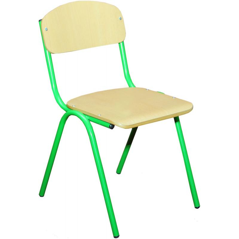 Scaun ISO cu laminare HPL are spătarul și șezutul fabricate din placaj lacuit ușor curbat cu grosimea de 8 mm, acoperit cu peliculă polimerică HPL de 0,4-0,5 mm grosime. Cadrul din profil metalic rotund de 16 mm diametru și 1,2 mm grosime este vopsit electrostatic și polimerizat. Toate piesele sunt asamblate cu nituri de aluminiu sigure și prevăzute cu garnituri din plastic rezistent. Culoarea carcasei este galben sau verde. Disponibil în trei grupe de creștere pentru copii între 2 și 6 ani, fiecare cu dimensiuni și greutate diferite. Termen garanție: 24 luni.