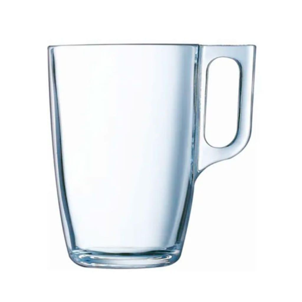 Cană NUEVO 320 ml realizată din sticlă de înaltă calitate, transparentă și rezistentă la lovituri. Are o suprafață netedă și este compatibilă cu cuptorul cu microunde și mașina de spălat vase. Volumul canii este de 320 ml, fiind ideală pentru servirea băuturilor calde sau reci.